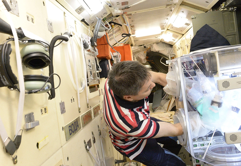 Термостат — это устройство, которое поддерживает стабильный температурный режим от +2 до 37 °С. Его используют для биологических и биотехнологических экспериментов на борту МКС. Например, с его помощью выращивают водоросли для эксперимента «Фотобиореактор», который нацелен проверить, можно ли обеспечивать человека воздухом, теплом, едой и водой прямо в космосе.